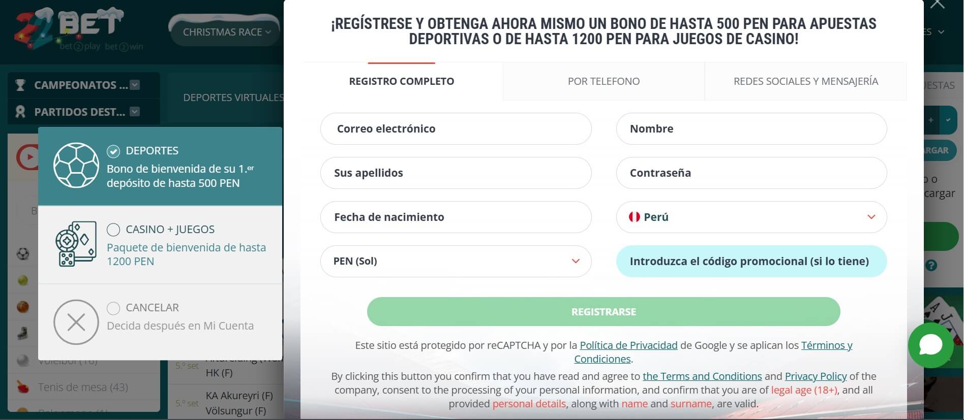 Como nuevo usuario del sitio puede obtener un bono del 100% hasta 500 PEN, el cual se ingresará automáticamente a tu cuenta si realiza un depósito mínimo de 4 PEN o más. Una vez el bono sea activado, el usuario debe seguir unos pocos términos y condiciones, tales como: