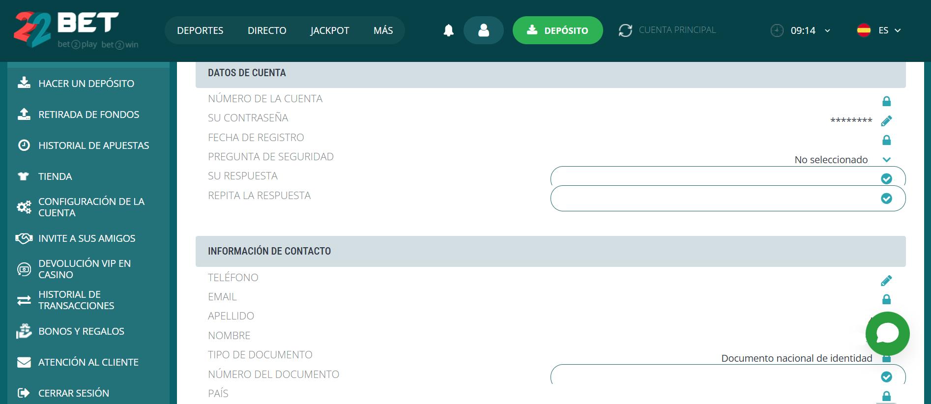 | Correo Electrónico | support-es@22bet.com; security@22bet.com |