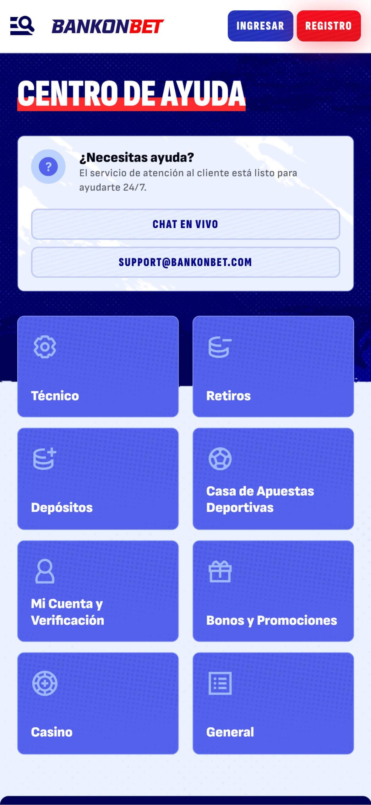 La dirección de correo es support@bankonbet.com y se prefiere para temas más formales. Considera también que hay una sección de preguntas frecuentes que no está de más consultar primero.