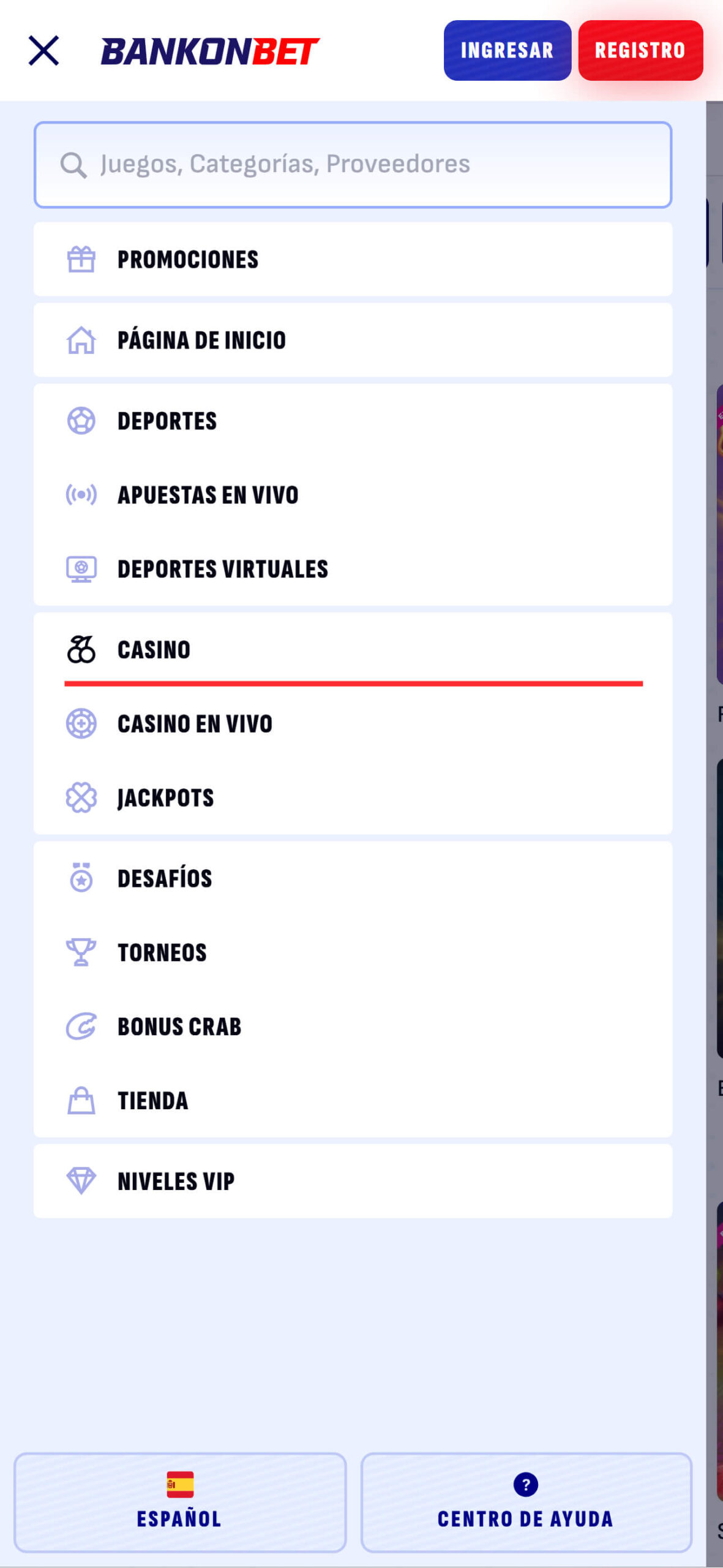 Bankonbet cuenta con un menú principal que está diseñado para hacer la navegación del sitio mucho más rápida y eficiente. El sitio también cuenta con un menú desplegable, aunque su uso es poco necesario debido a la claridad que maneja el principal. Para más información del sitio y enlaces útiles, puede deslizar hasta el final de la página, ahí hallará todo lo que necesita, hasta el mapa de Bankonbet.