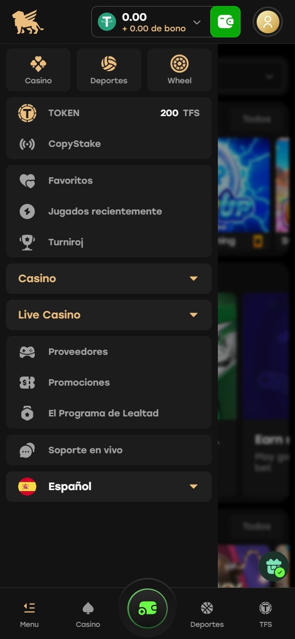 Ahora, si eres de los que prefieren las apuestas deportivas, las opciones son un poco más reducidas, pero puedes conseguir bonos de cashback del 5% de manera semana y también puedes formar parte del programa de lealtad, donde mientras más apuestas, tu nivel sube y obtienes más oportunidades y beneficios.