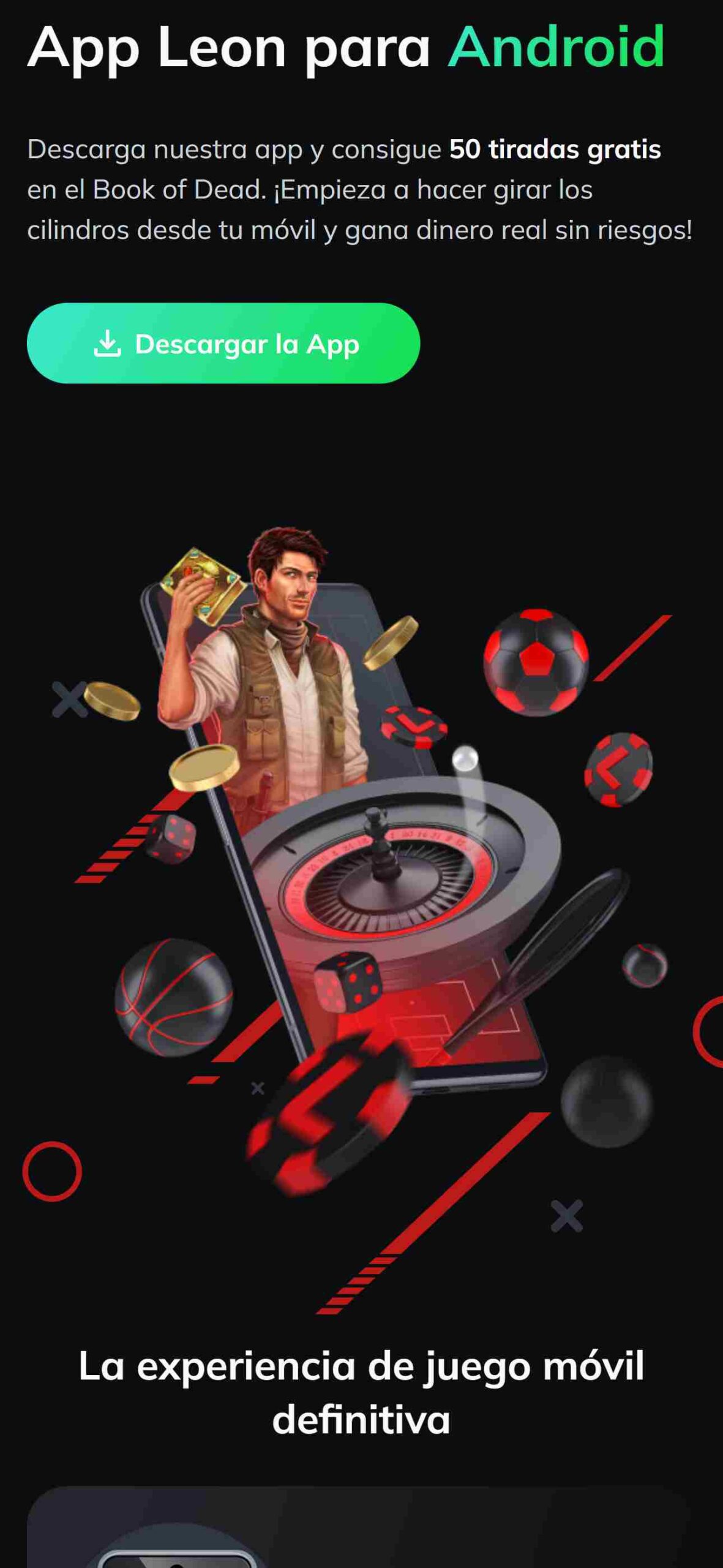 La versión móvil y aplicación de Leon Perú no pierde ninguna detalle de la web. Ambas versiones cuentan con las mismas funciones que la plataforma de escritorio, sin embargo, al descargar la app puedes llegar a obtener 50 tiradas gratis por si te interesa jugar al casino online.