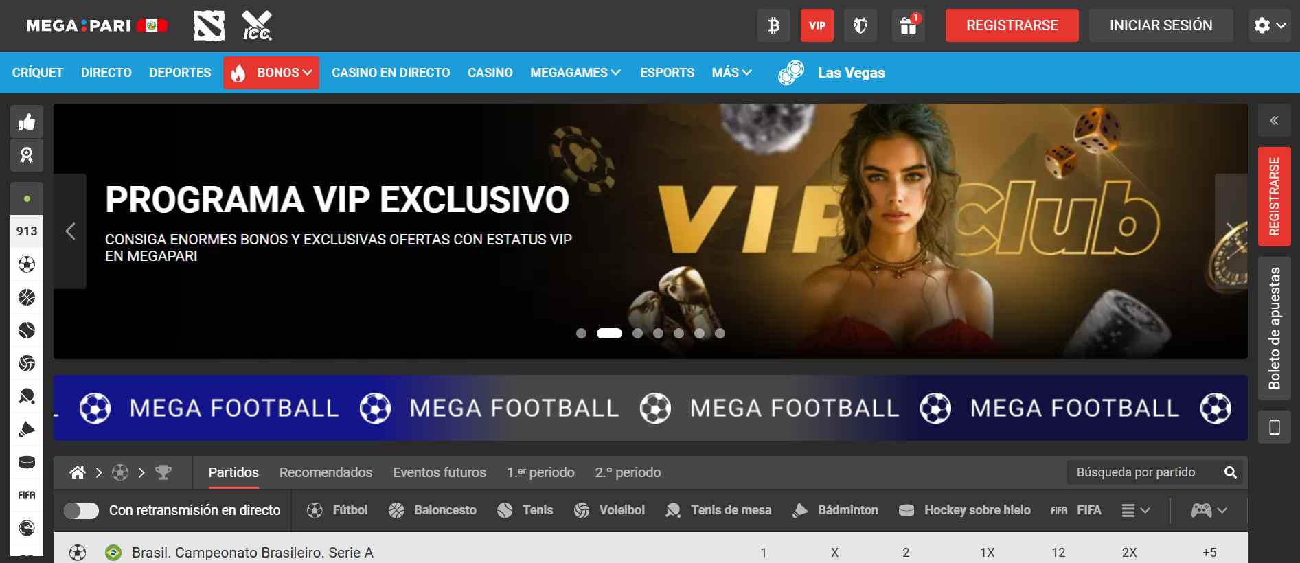 La casa de apuestas Megapari Perú, brinda una de las experiencias más completas del mercado, ofreciendo un amplio catálogo deportivo, cuotas más elevadas que el resto, bonificaciones y promociones atrayentes, atención al cliente de calidad, app móvil y ¡mucho más!
