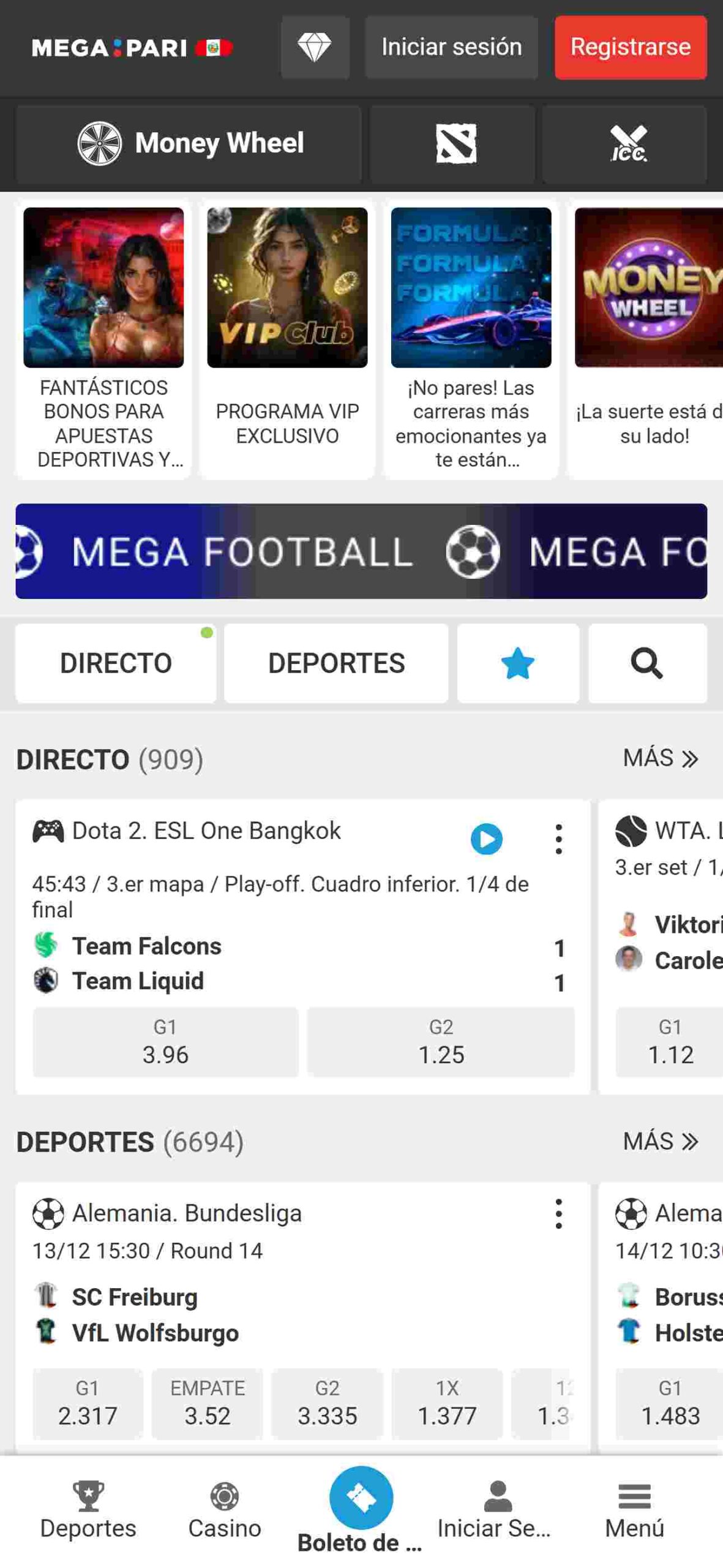 Megapari cuenta con una sección en directo, pero lo que marca la diferencia sobre otras plataformas es su función multiDIRECTO. Con esta función, podrá seguir más de dos juegos al mismo tiempo y apostar por ellos sin perderle de vista en ningún momento. Además, la plataforma otorga retransmisiones, estadísticas detalladas, gráficos interactivos y cuotas que se actualizan en tiempo real y por las cuales puedes optar si mejoran.